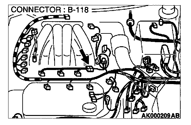 STEP 6. Check connector B-118 at injector intermediate connector for damage.