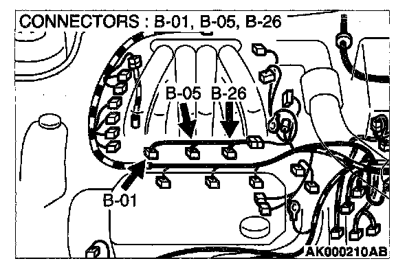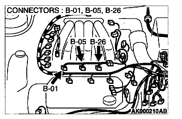 STEP 8. Check connector B-01, B-05, B-26 at right bank injector for damage.