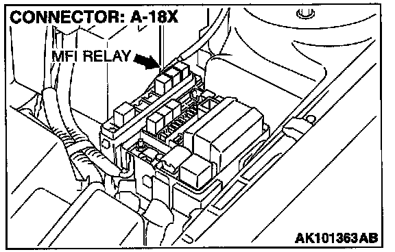 STEP 4. Check connector A-18X at the MFI relay for damage.