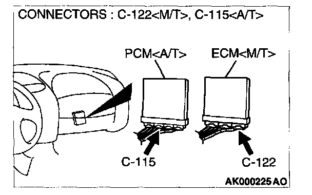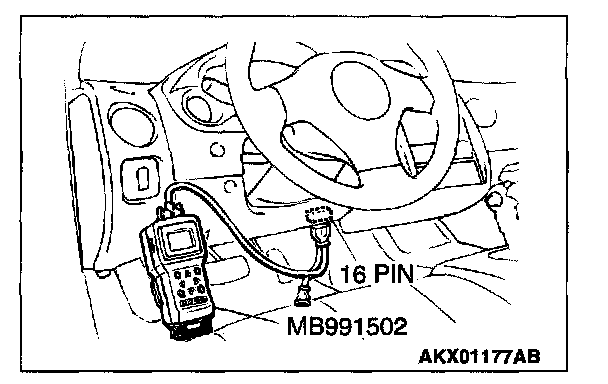 CAUTION:To prevent damage to scan tool MB991502, always turn the ignition switch to the "LOCK" (OFF) position before connecting or disconnecting scan tool MB991502.