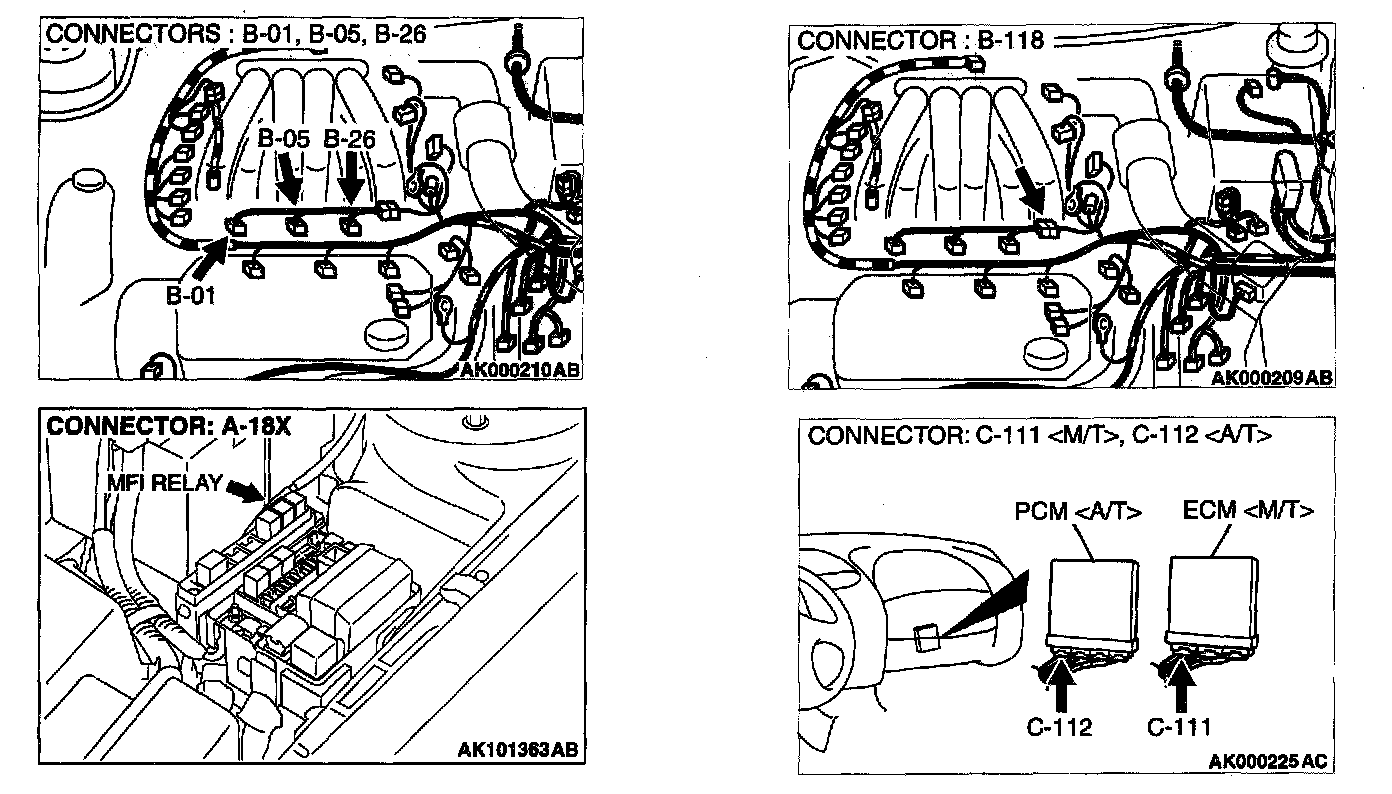STEP 8. Check for harness damage between MFI relay connector A-18X terminal 4 and injector intermediate connector B-118 terminal 1.