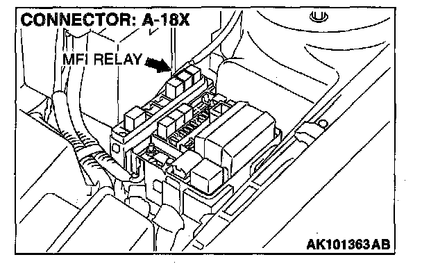 STEP 7. Check connector A-18X at MFI relay for damage.
