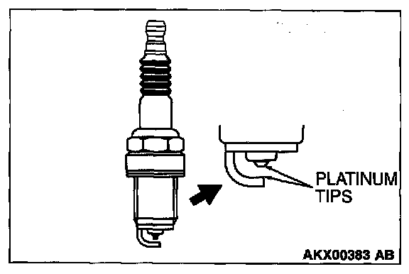 CAUTION: Do not attempt to adjust the gap of the platinum plug. Cleaning of the platinum plug may result in damage to the platinum tips. Therefore, if carbon deposits must be removed, use a plug cleaner and complete cleaning within 20 seconds to protect the electrode. Do not use a wire brush.