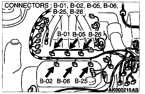 STEP 8. Check connector B-01, B-02, B-05, B-06, B-25, B-26 at injector and connector B-118 at injector intermediate connector for damage.
