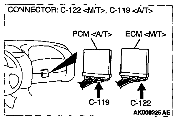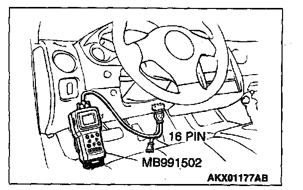 CAUTION: To prevent damage to scan tool MB991502, always turn the ignition switch to the "LOCK" (OFF) position before connecting or disconnecting. scan tool MB991502.