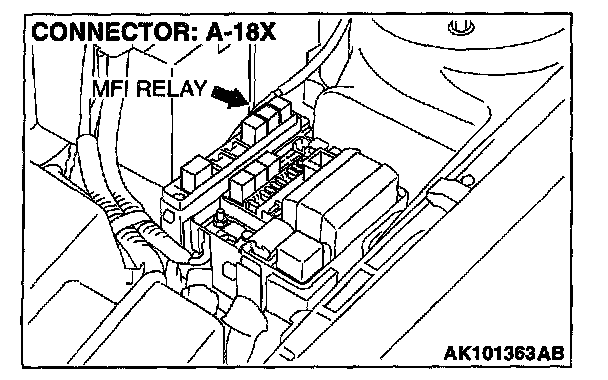 STEP 5. Check connector B-18X at MFI relay for damage.