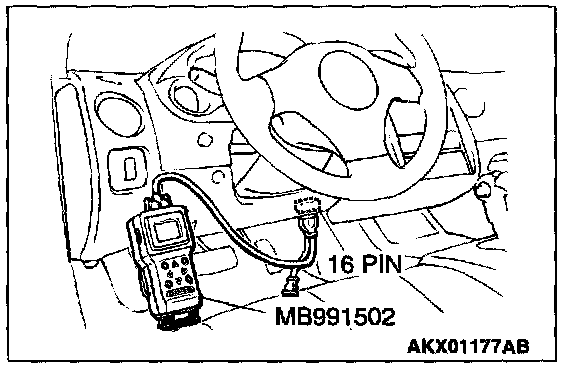 1. Connect scan tool MB991502 to the data link connector.