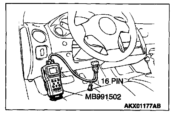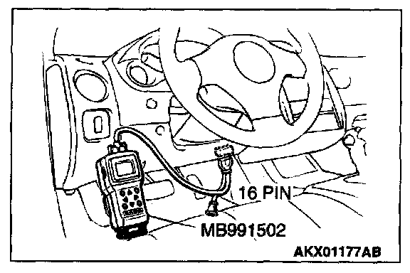 1. Connect scan tool MB991502 to the data link connector.