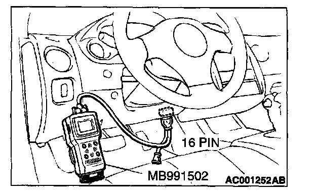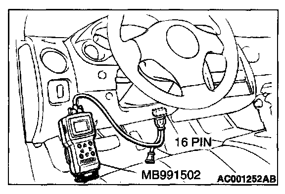 1. Connect scan tool MB991502 to the data link connector.