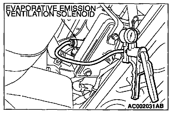 Evaporative Emission Ventilation Solenoid. When the evaporative emission ventilation solenoid is operated, apply a pressure on the hand vacuum pump and confirm that air is maintained.