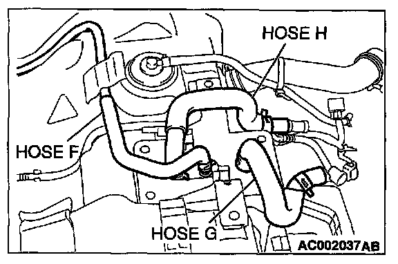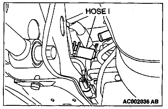 1. Disconnect hose I from the evaporative emission canister side, and plug the hose from which the pipes have been disconnected.