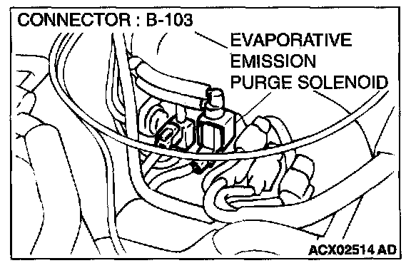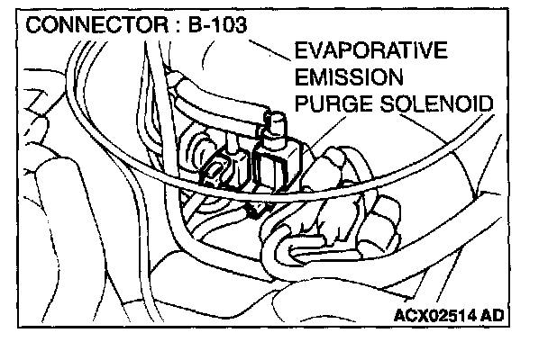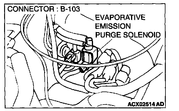 1. Disconnect the evaporative emission purge solenoid connector B-103.