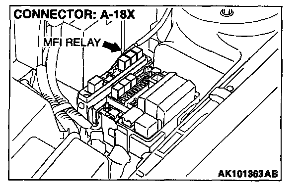STEP 5. Check connector A-18X at MFI relay for damage.