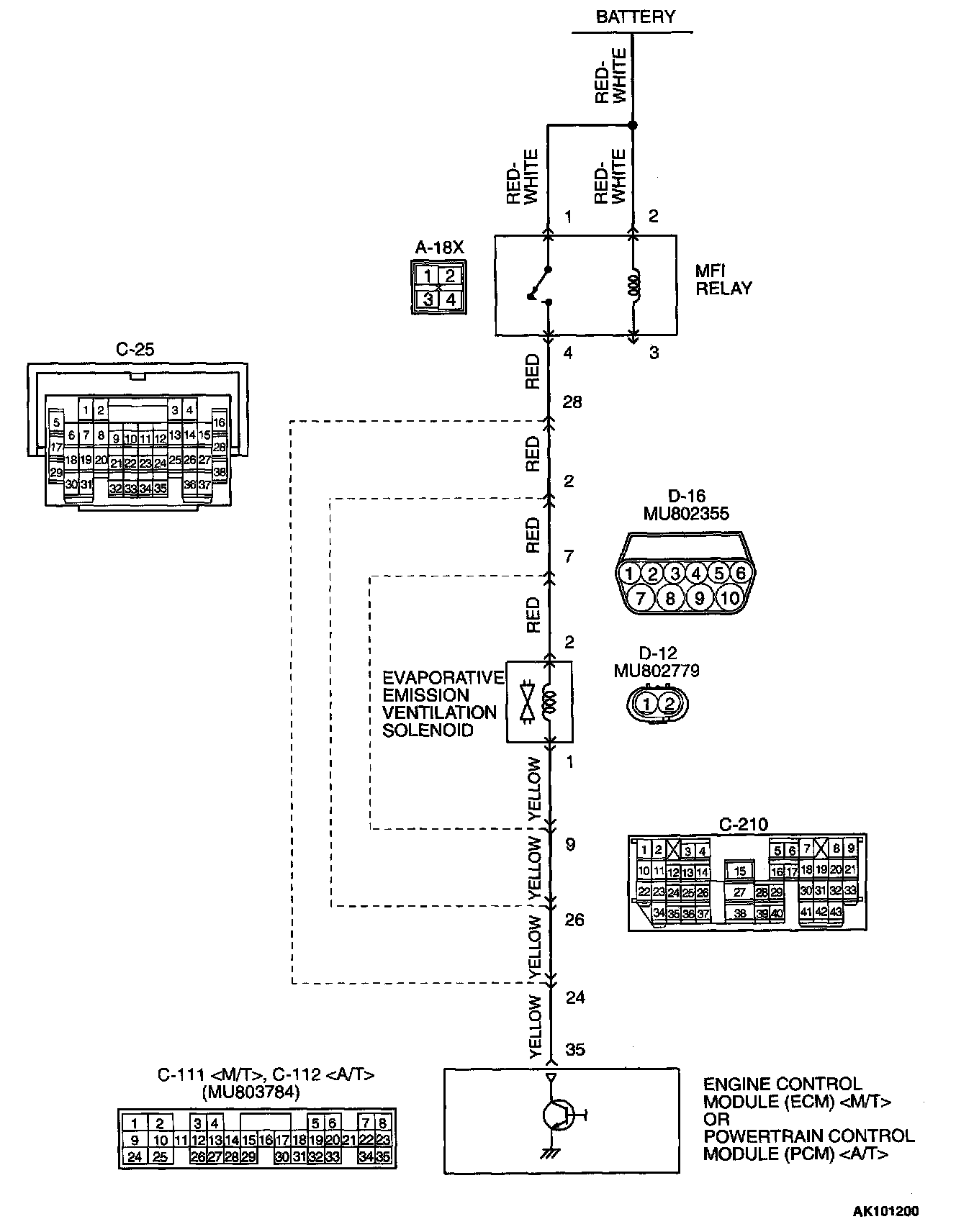 - The evaporative emission ventilation solenoid power is supplied from the MFI relay (terminal 4).