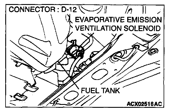 1. Disconnect the evaporative emission ventilation solenoid connector D-12.