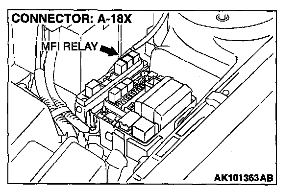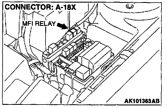 STEP 5. Check connector B-18X at MFI relay for damage.