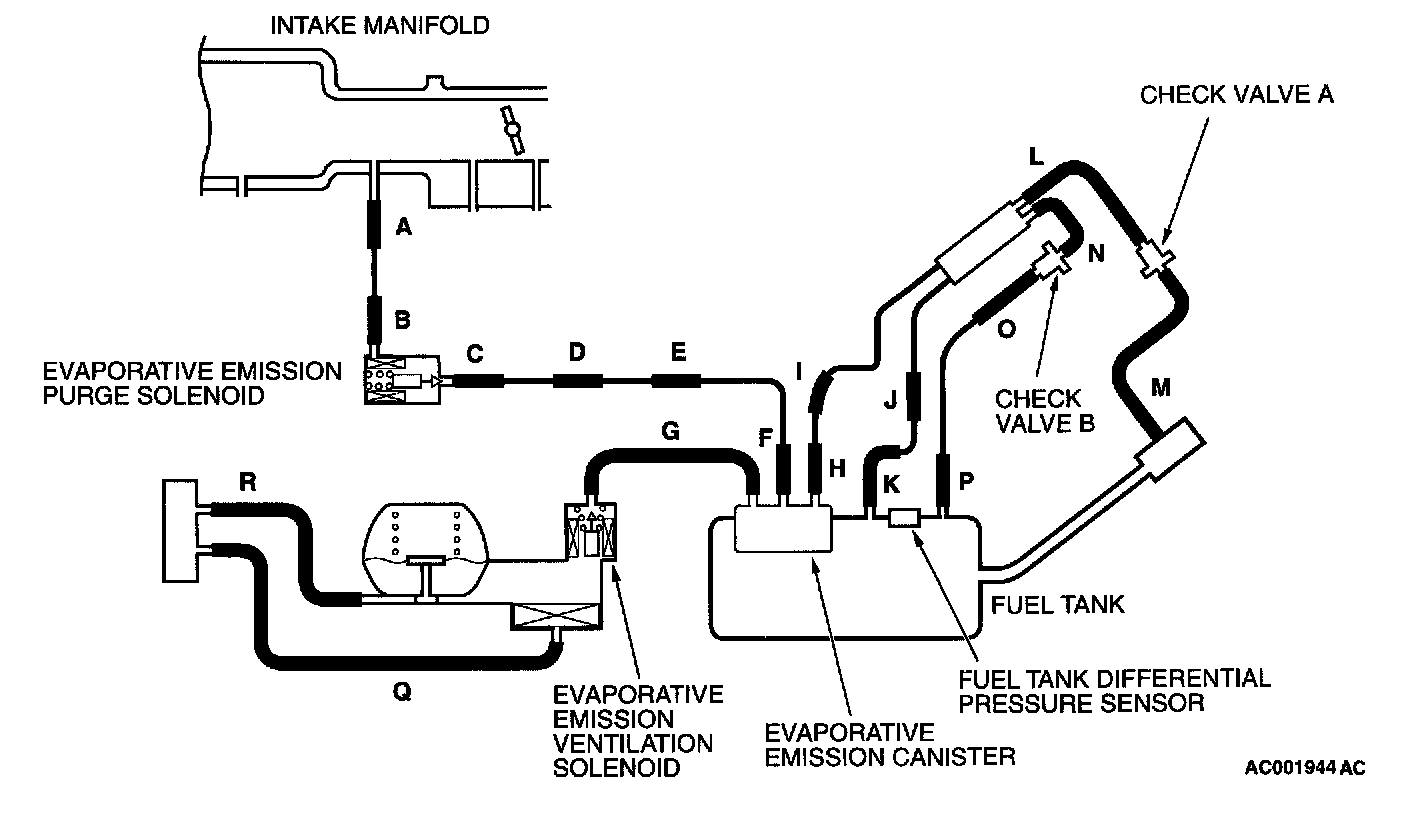 - When the evaporative emission purge solenoid valve is activating at 100 percent ratio, the fuel differential pressure sensor output voltage remains 4.0 volts or more for ten seconds.
