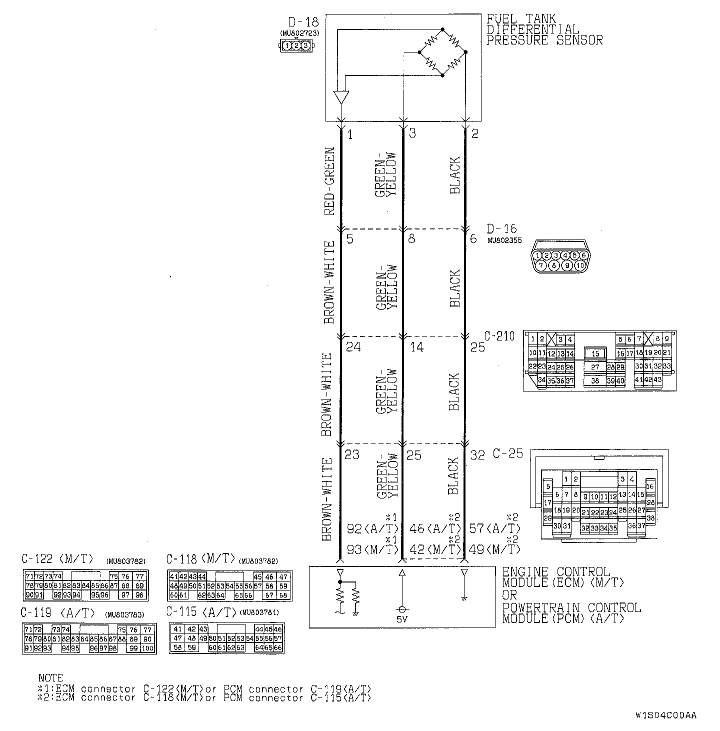 - A voltage proportional to the pressure in the fuel tank is sent from the output terminal of the fuel tank differential pressure sensor (terminal 1) to the ECM (terminal 93)