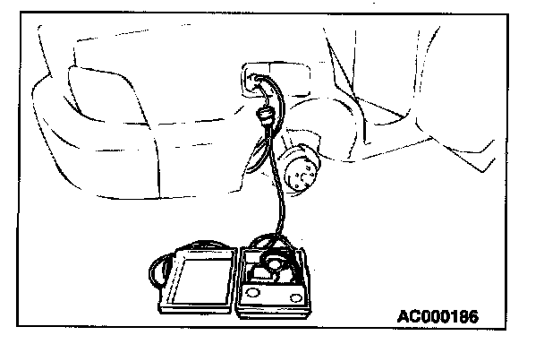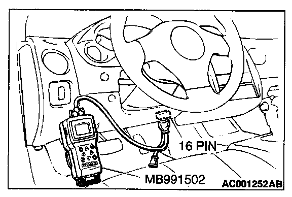 CAUTION: To prevent damage to scan tool MB991502, always turn the ignition switch to the "LOCK" (OFF) position before connecting or disconnecting scan tool MB991502.