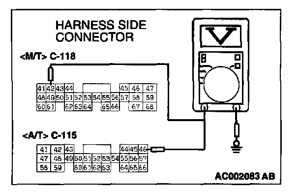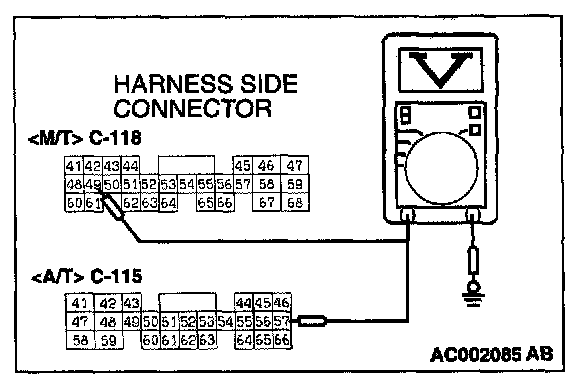 2. Use special tool (MB991709) to connect terminal 6 between connectors of the intermediate connector.