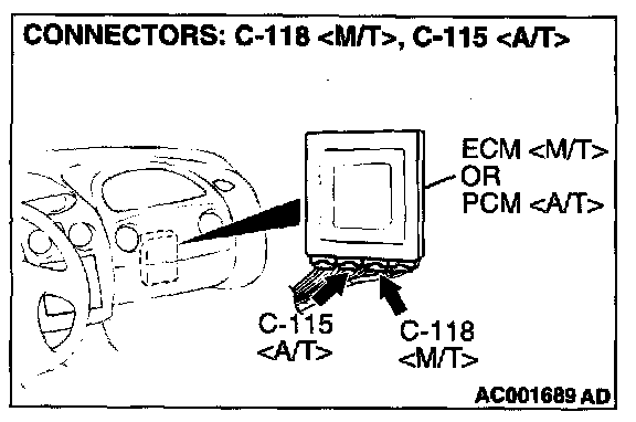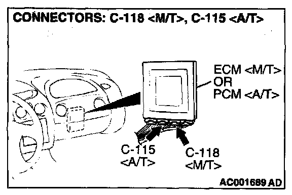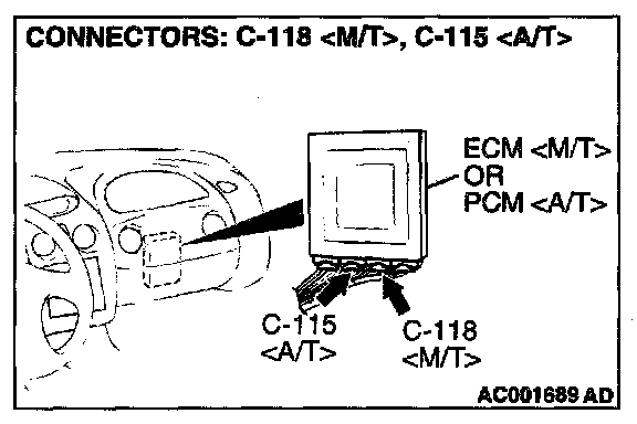 STEP 13. Check connectors C-25, C-210, D-16 at intermediate connector and C-118 at ECM