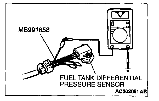 5. Set scan tool MB991502 to the data reading mode for item 73, Fuel Tank Differential Pressure Sensor.
