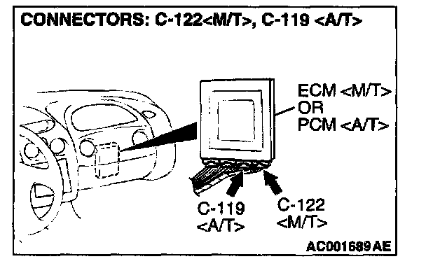 STEP 4. Check connectors C-25, C-210, D-16 at intermediate connector and C-122 at ECM