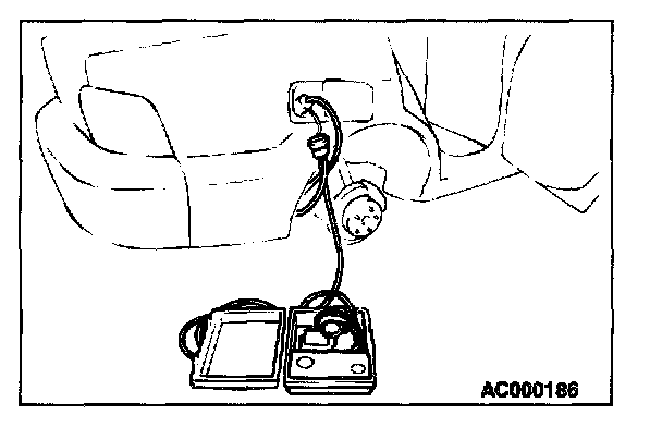 CAUTION: To prevent damage to scan tool MB991502, always turn the ignition switch to the "LOCK" (OFF) position before connecting or disconnecting scan tool MB991502.