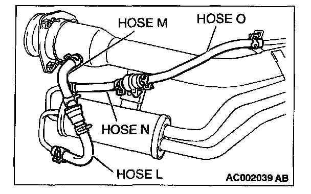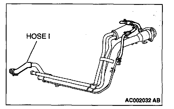 1. Disconnect hose I from the evaporative emission canister side, and unplug the hose I.