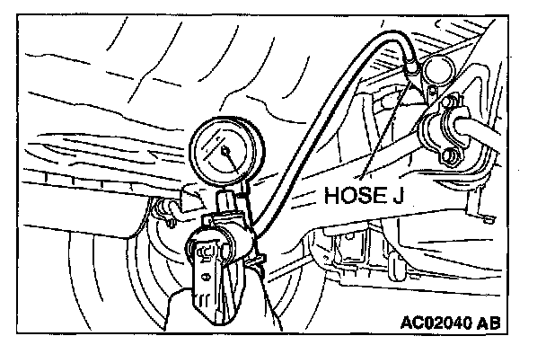 2. Disconnect hose J at the liquid separator side, and then connect a hand vacuum pump to the hose.