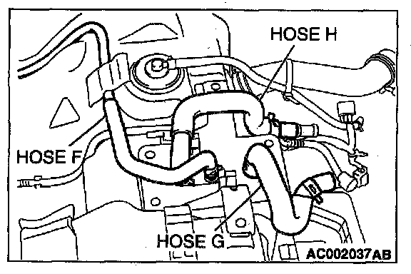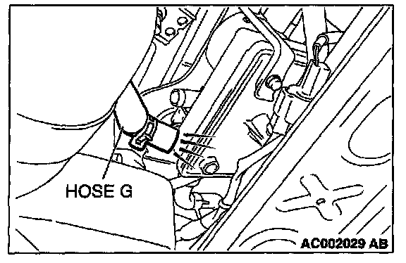 1. Disconnect hose G from the evaporative emission ventilation solenoid side, and plug the hoses.