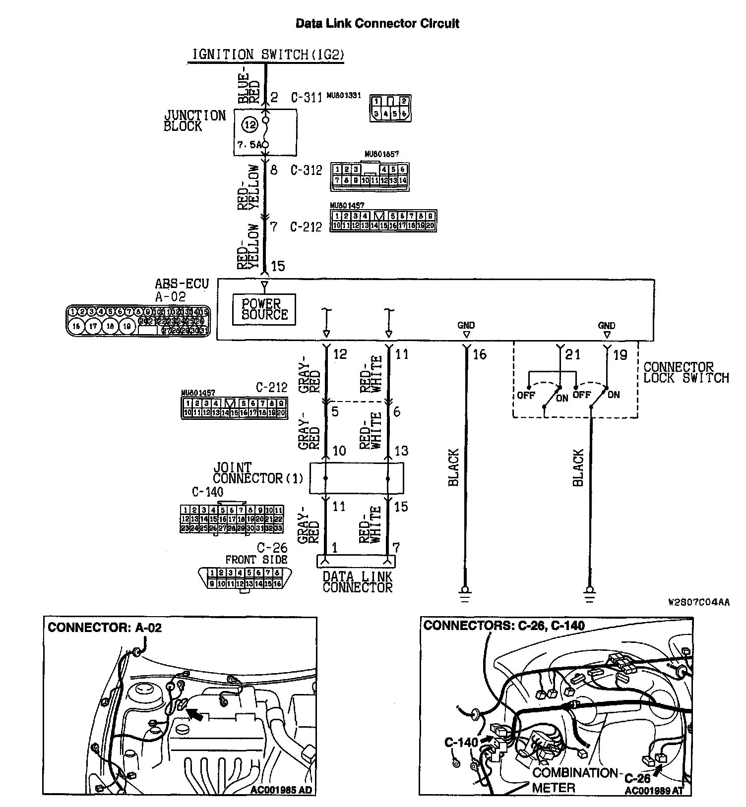 STEP: 3. Check the harness wire between ABS-ECU connector A-02 and data link connector C-26.