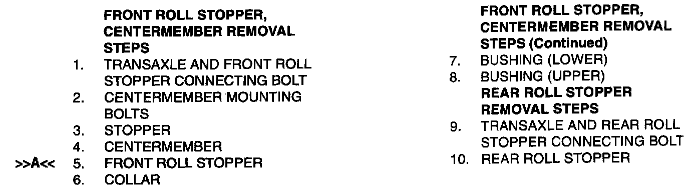 ENGINE ROLL STOPPER AND CENTERMEMBERREMOVAL AND INSTALLATION