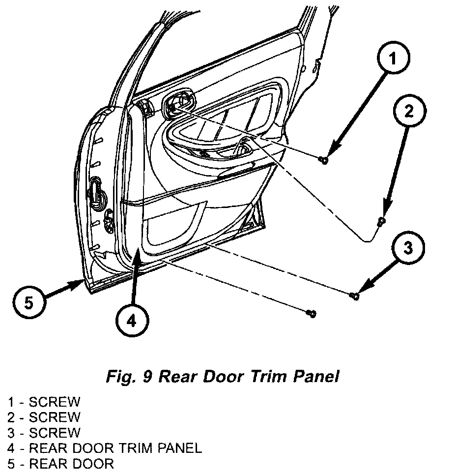 (7) Install screws attaching door trim panel to door. (Fig. 9)