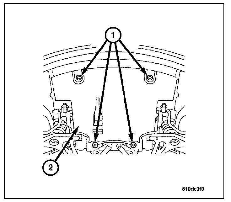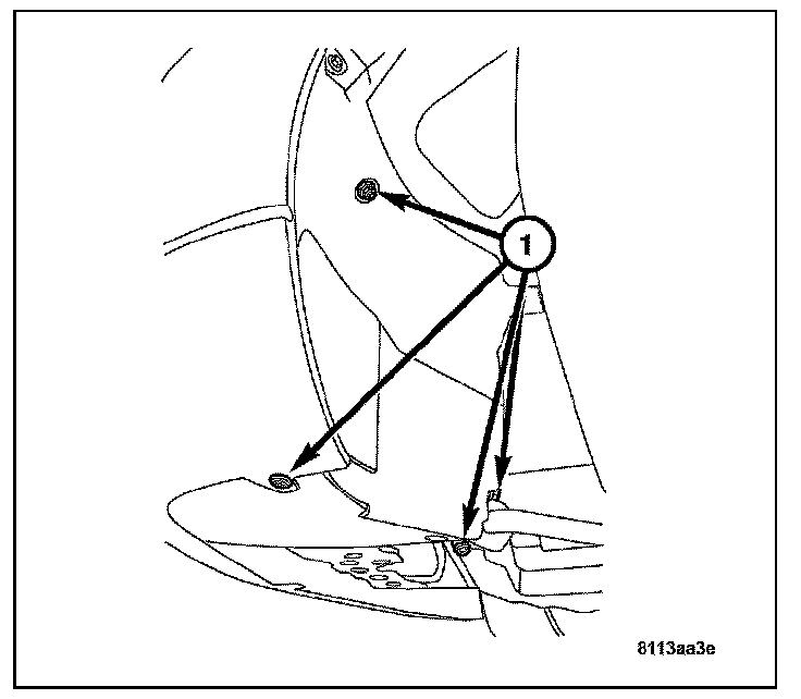 1. Position the fascia on the vehicle and install the upper facia retaining bolts (1).