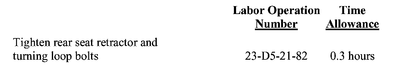 Recall - Rear Seat Belt Retractor Bolt Torque: Overview