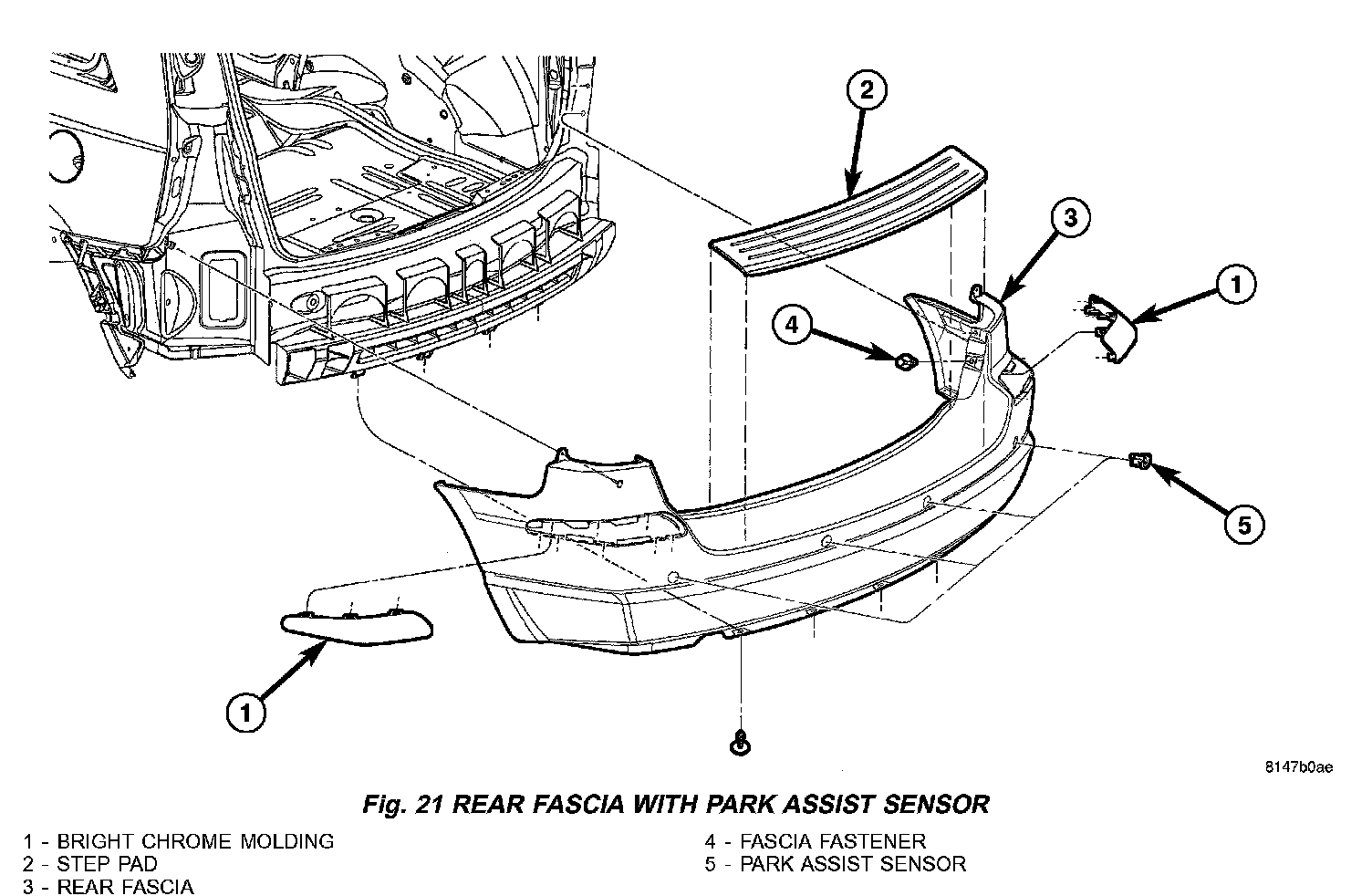 8. Remove rear fascia from vehicle by lifting sides of fascia up and outboard to release from rear fascia brackets.