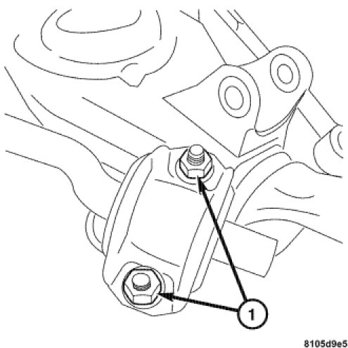 2. Install the two bolts (1) attaching the lower control arm to the frame. Tighten to 120 Nm (88 ft. lbs.).