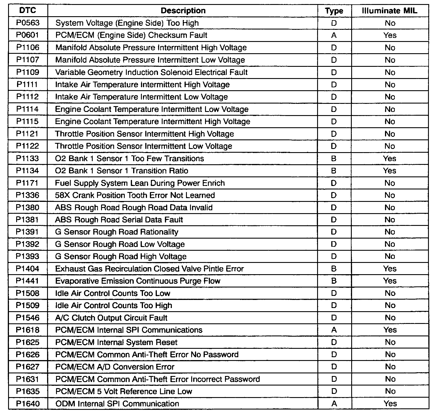 DTC P0563 Thru P1640: