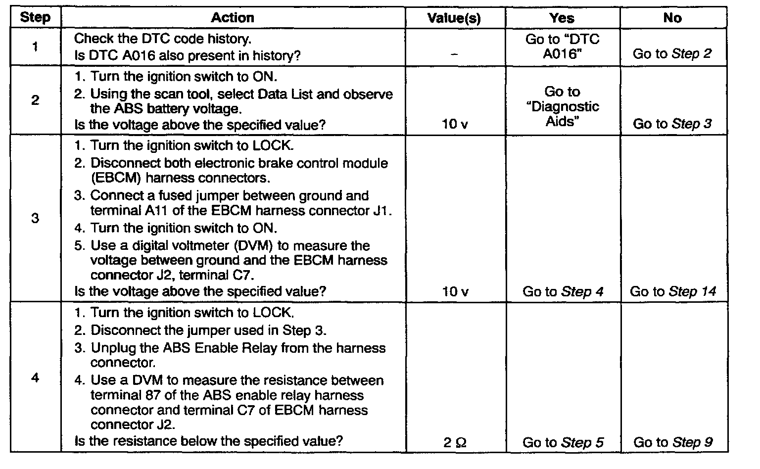 DTC A014 - ABS Enable Relay Contact Circuit Open
