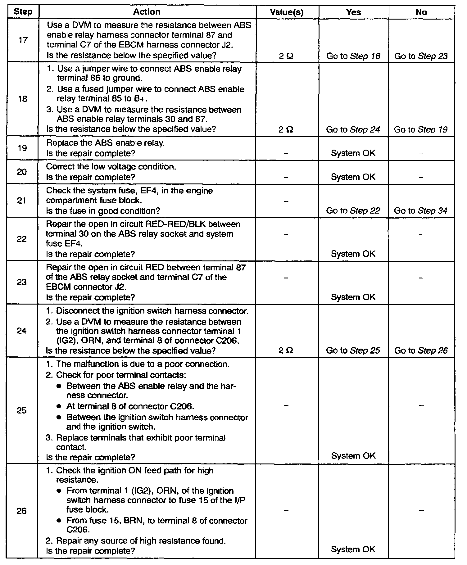 27. This step checks for excessive resistance in the ABS enable relay coil.