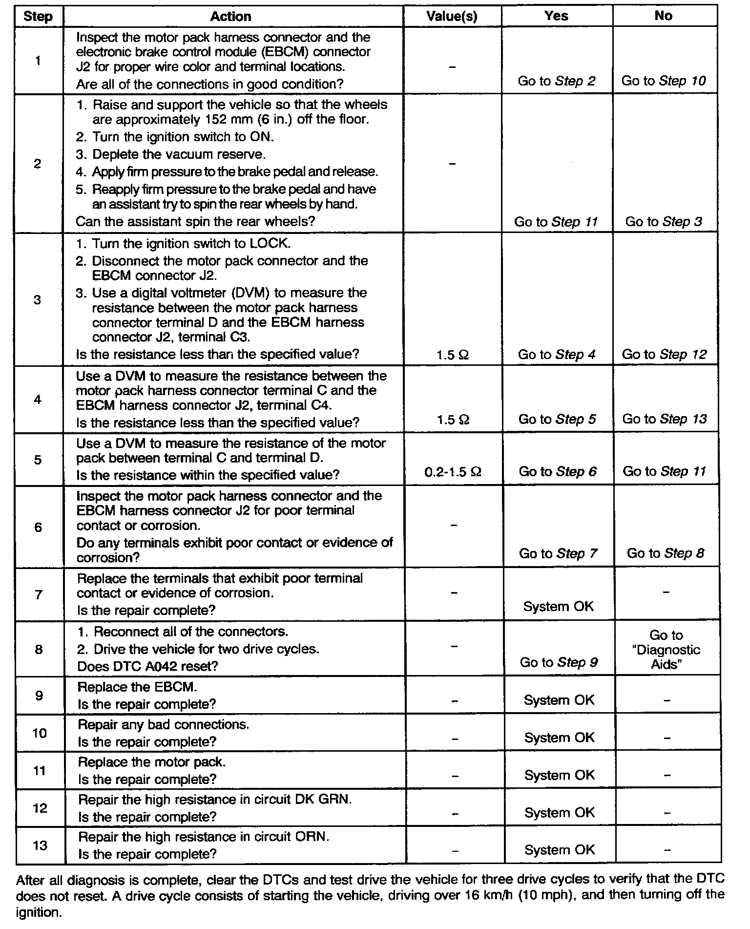 DTC A042: Rear Axle Esb Will Not Hold Motor