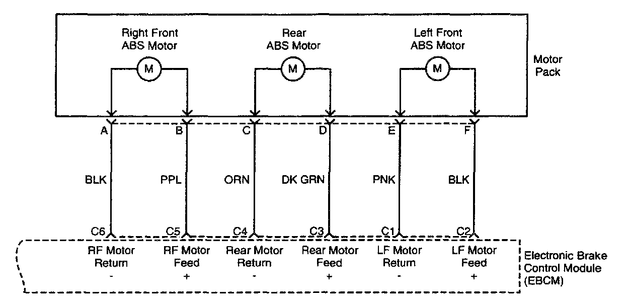This DTC will diagnose a motor that is energized longer than expected. This could occur if a wheel speed sensor is malfunctioning, the motor does not turn, the left front solenoid mechanically fails open, or the motor wires are crossed.