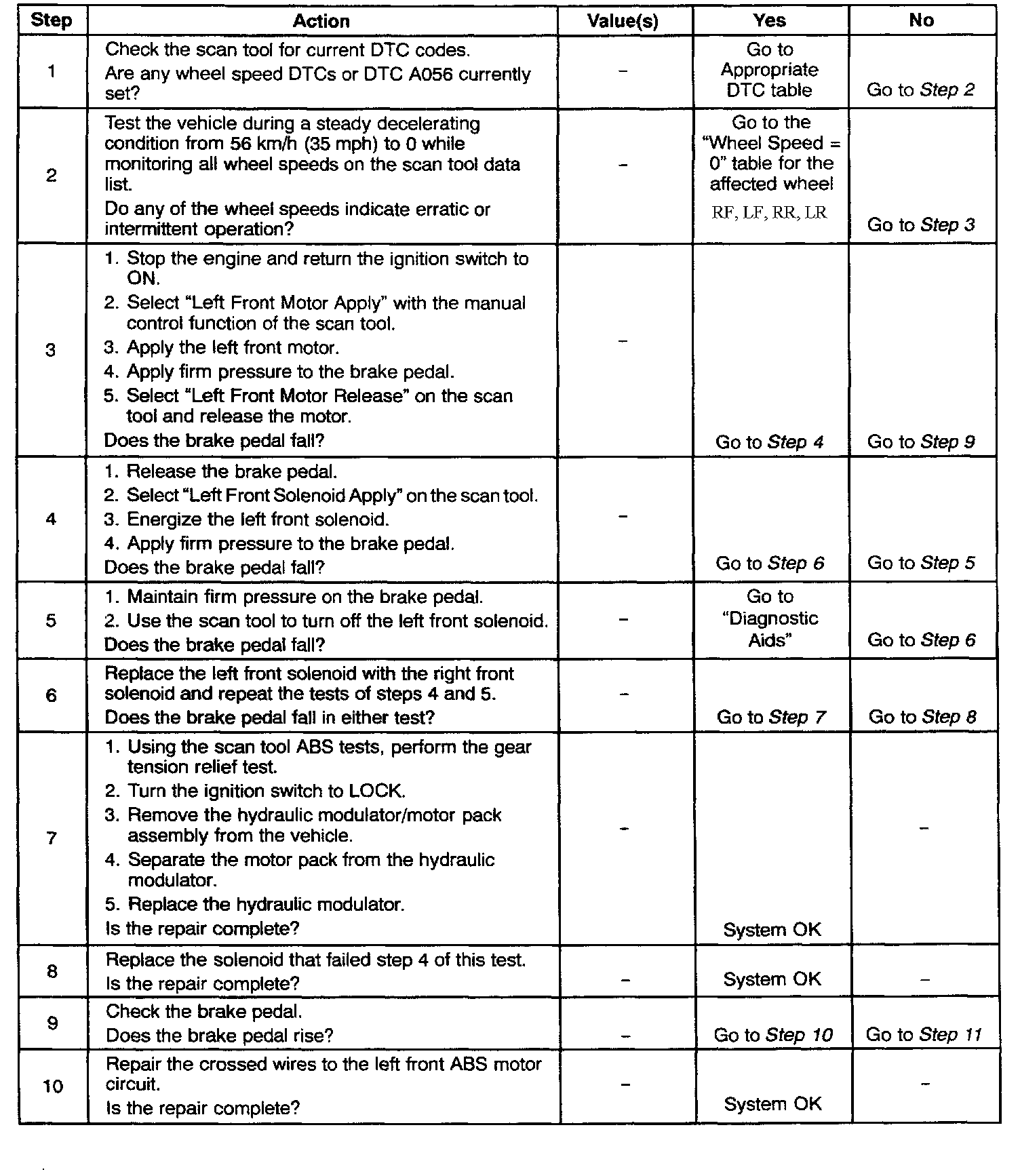 6. If Step 4 has failed, this serves to trace the cause of the hydraulic problem to either the solenoid or the hydraulic modulator.