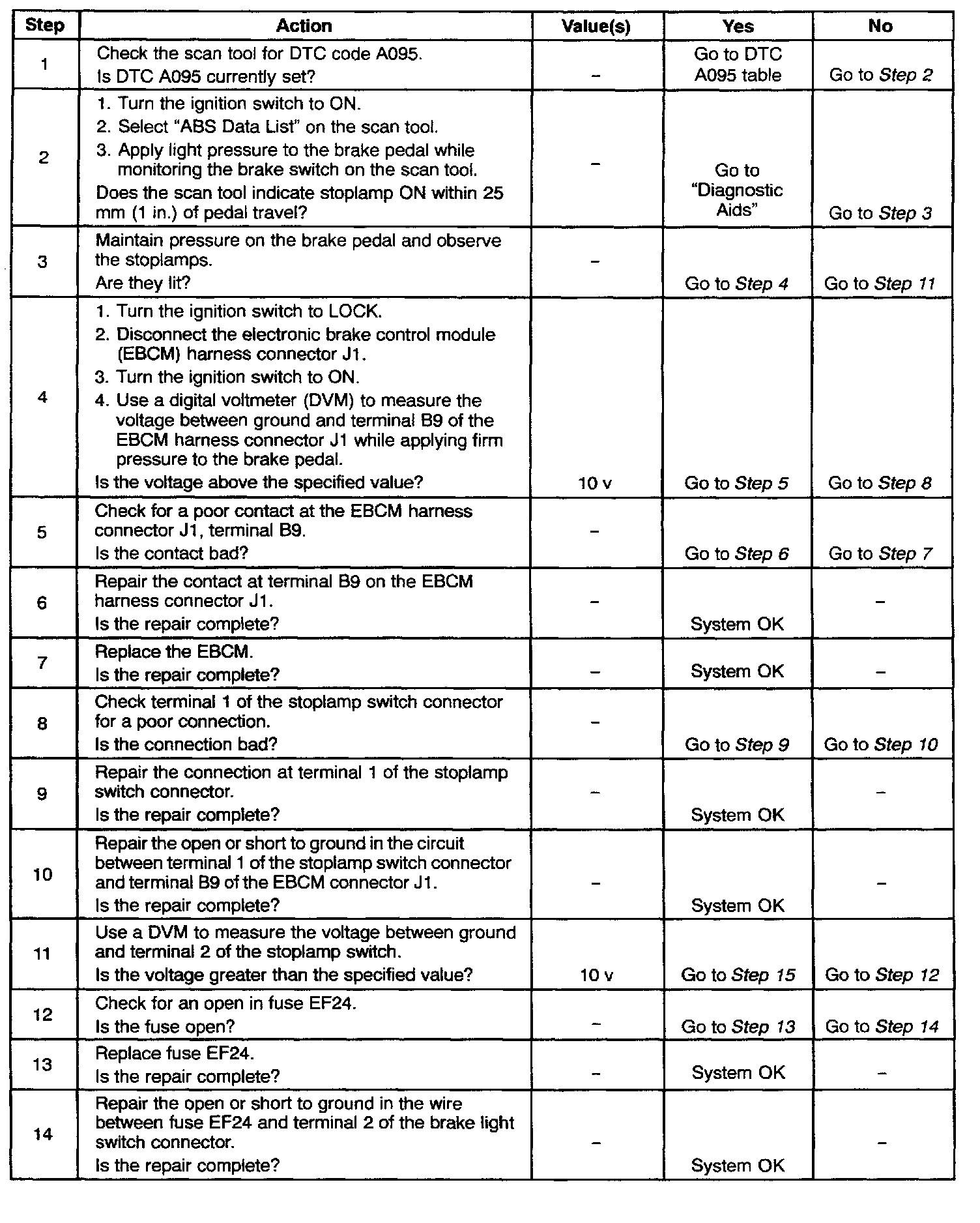 4. This step traces the open circuit to either the stoplamp switch input circuitry or the EBCM.