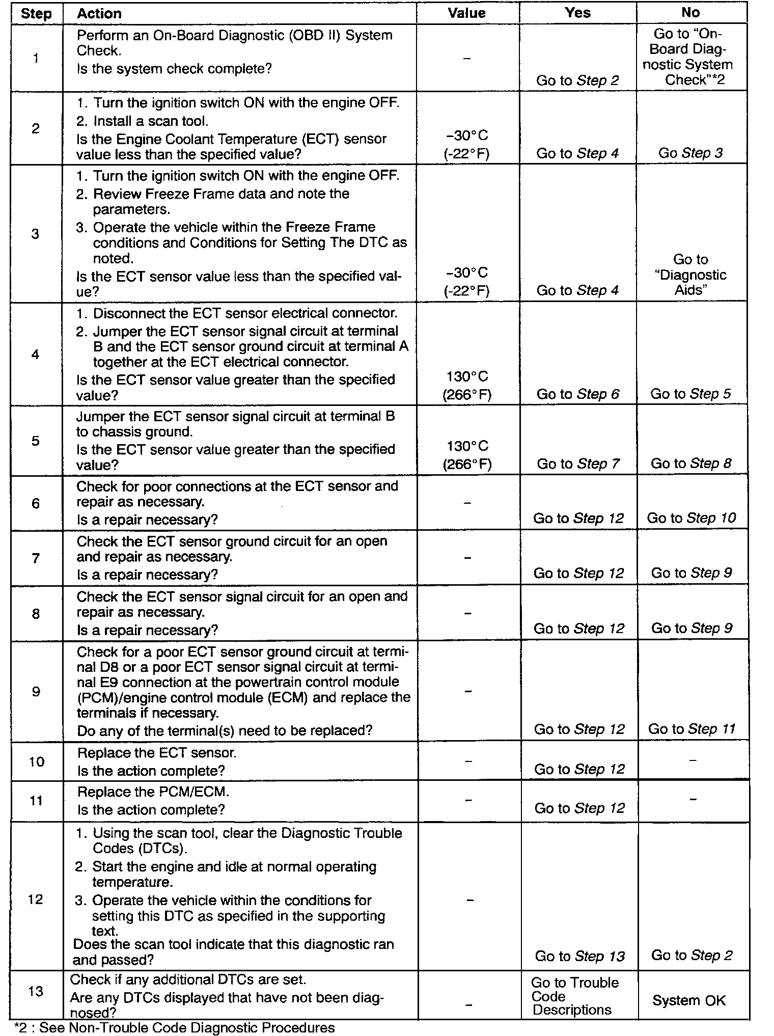 - The ECT sensor indicates that the engine coolant temperature is less than -40 °C (-40 °F).