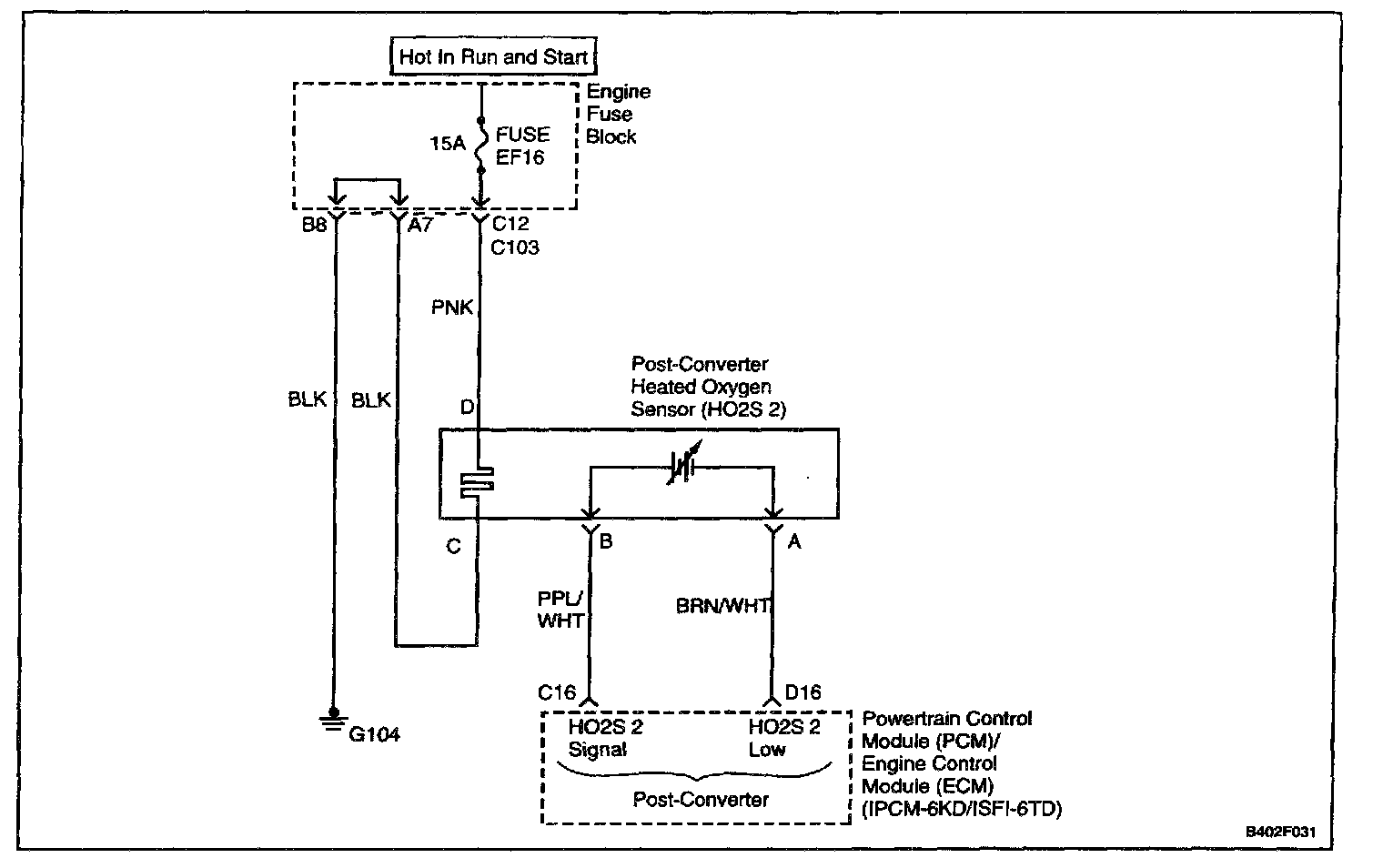The powertrain control module (PCM)/engine control module (ECM) has the ability to monitor this process by using a Heated Oxygen Sensor (HO2S 2). The HO2S 2, located in the exhaust stream past the catalytic converter, produces an output signal which indicates the storage capacity of the catalyst; this in turn indicates the catalyst's ability to convert exhaust emissions effectively. If the catalyst is functioning properly, the HO2S 2 signal will be far less active than the signal produced by the Oxygen Sensor (O2S 1).