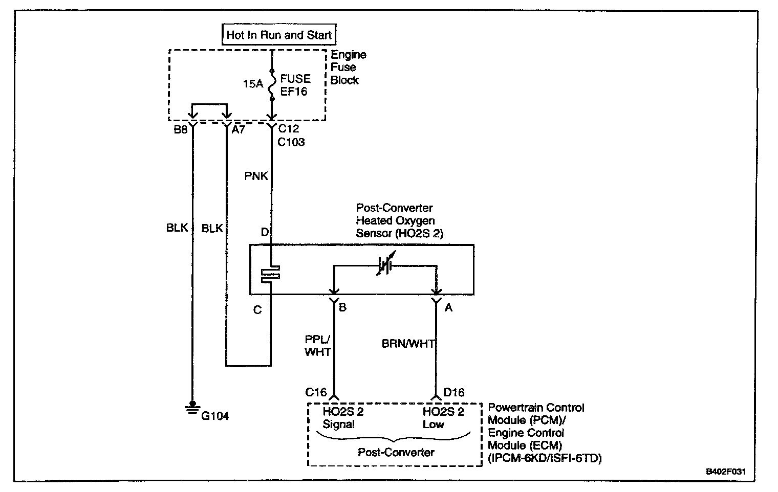 The powertrain control module (PCM)/engine control module (ECM) has the ability to monitor this process by using a Heated Oxygen Sensor (HO2S 2). The HO2S 2, located in the exhaust stream past the catalytic converter, produces an output signal which indicates the storage capacity of the catalyst; this in turn indicates the catalyst's ability to convert exhaust emissions effectively. If the catalyst is functioning property, the HO2S 2 signal will be far less active than the signal produced by the Oxygen Sensor (O2S 1).