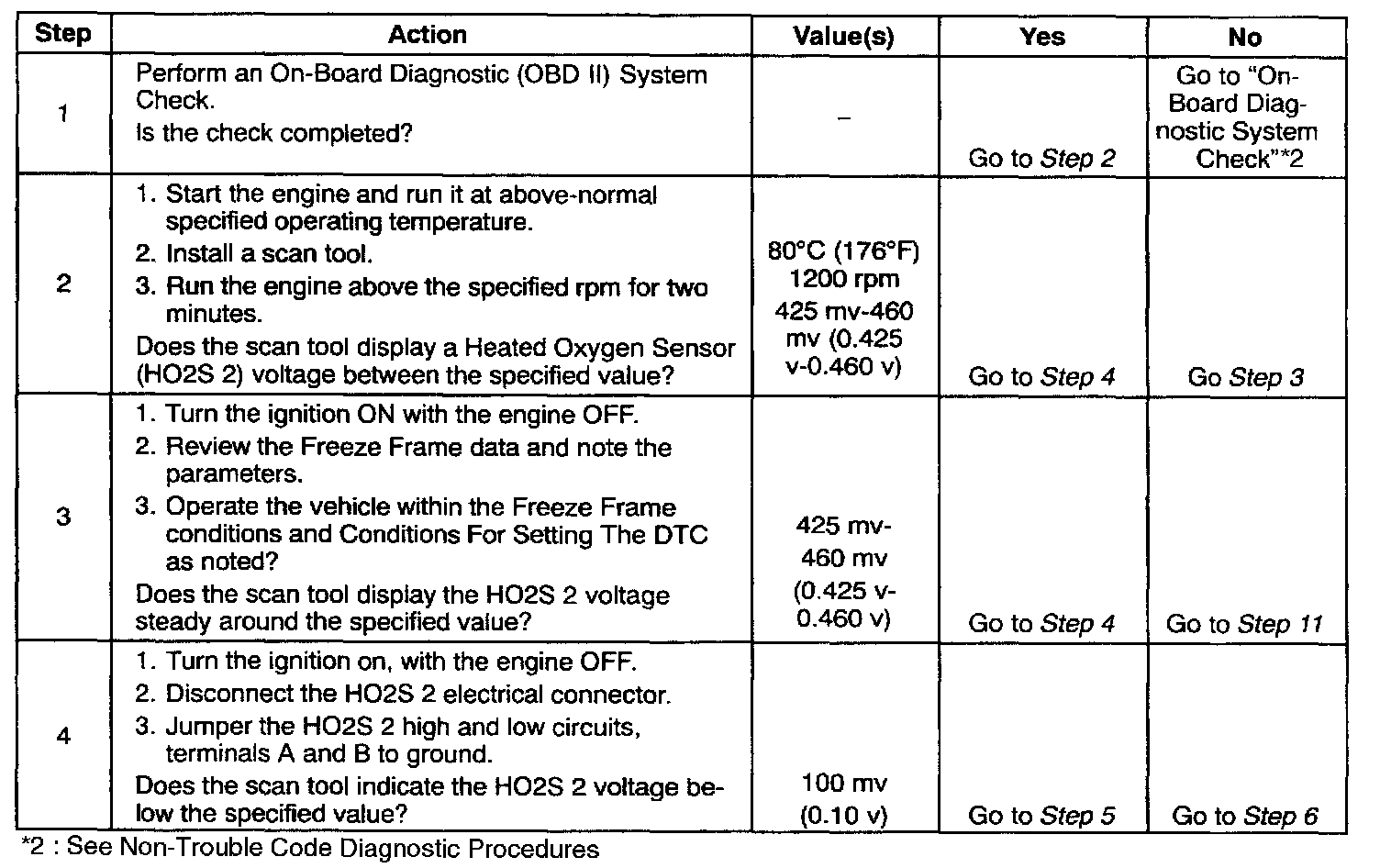 - Intermittent test - Observe the HO2S 2 on scan tool while moving related connections and wiring harness with the ignition ON. If the failure is induced, the HO2S 2 display will change. This may help isolate the location of the malfunction.