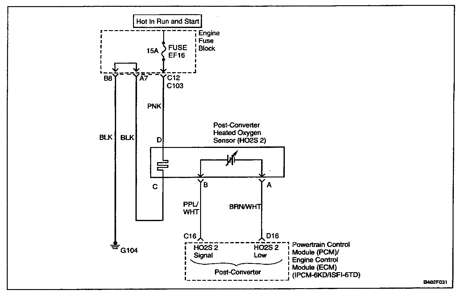 3. Probing terminal D of the HO2S 2 connector verifies if voltage is available to the HO2S 2 heater.